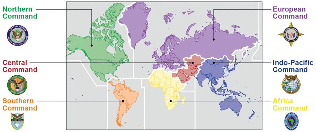 Zgodnie z Wikipedią na temat geograficznych dowództw bojowych Departamentu Obrony USA1: