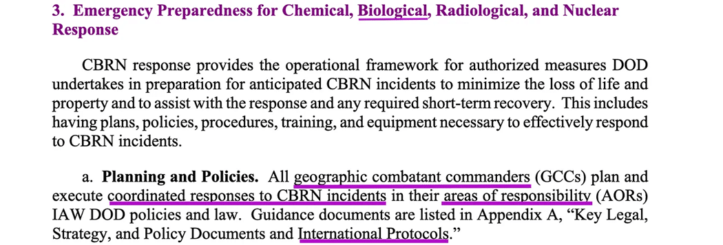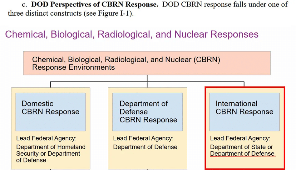 W celu uzyskania dalszego kontekstu na temat dowództw bojowych w odniesieniu do covidowych “ćwiczeń na żywo“, wróćmy (ponownie) do dokumentu DoD dotyczącego reagowania chemicznego, biologicznego, radiologicznego i nuklearnego (“CBRN”).
