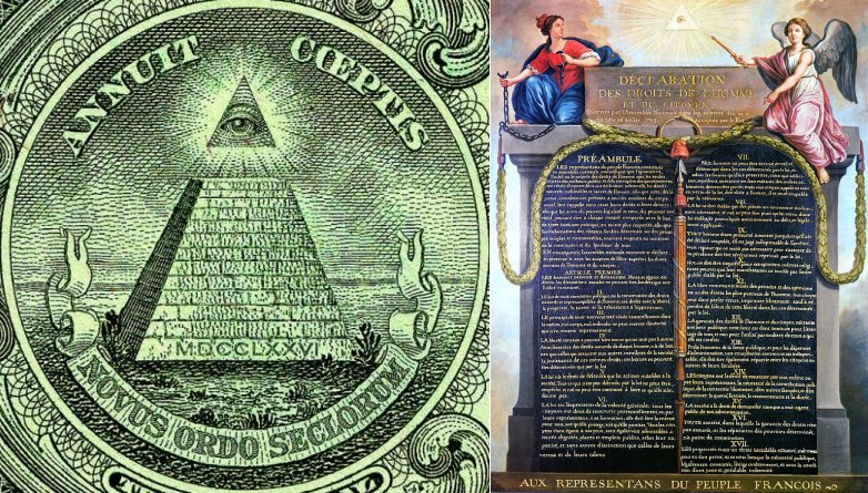 Ze względu na duży wpływ masonerii na wydarzenia historyczne minionych stuleci, symbol Wszechwidzącego Oka został umieszczony na ważnych dokumentach, takich jak rewers Wielkiej Pieczęci Stanów Zjednoczonych i Deklaracja Praw Człowieka.